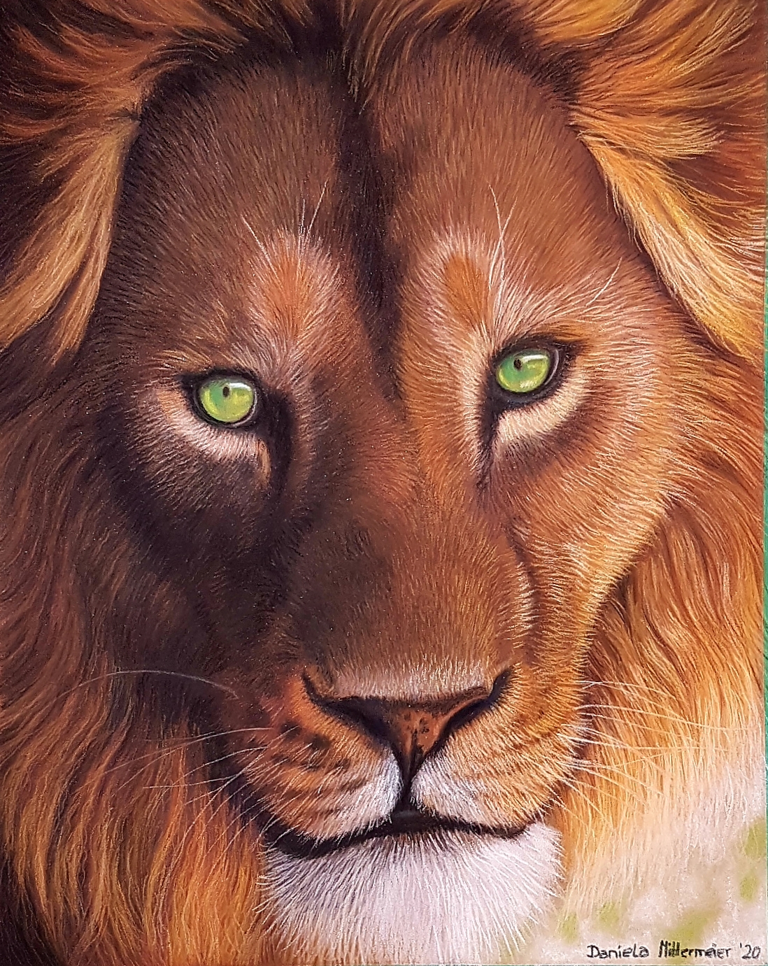 Daniela erfasst den Charakter eines Tiere intuitiv, tritt mit ihm in Kontakt und erschafft so mit dem Tier gemeinsam ein außergewöhnlich lebendiges Portrait mit Pastell, Kohle oder anderen Medien.